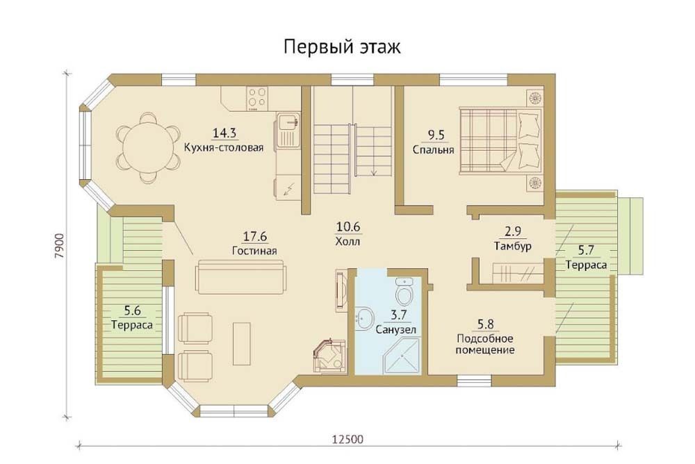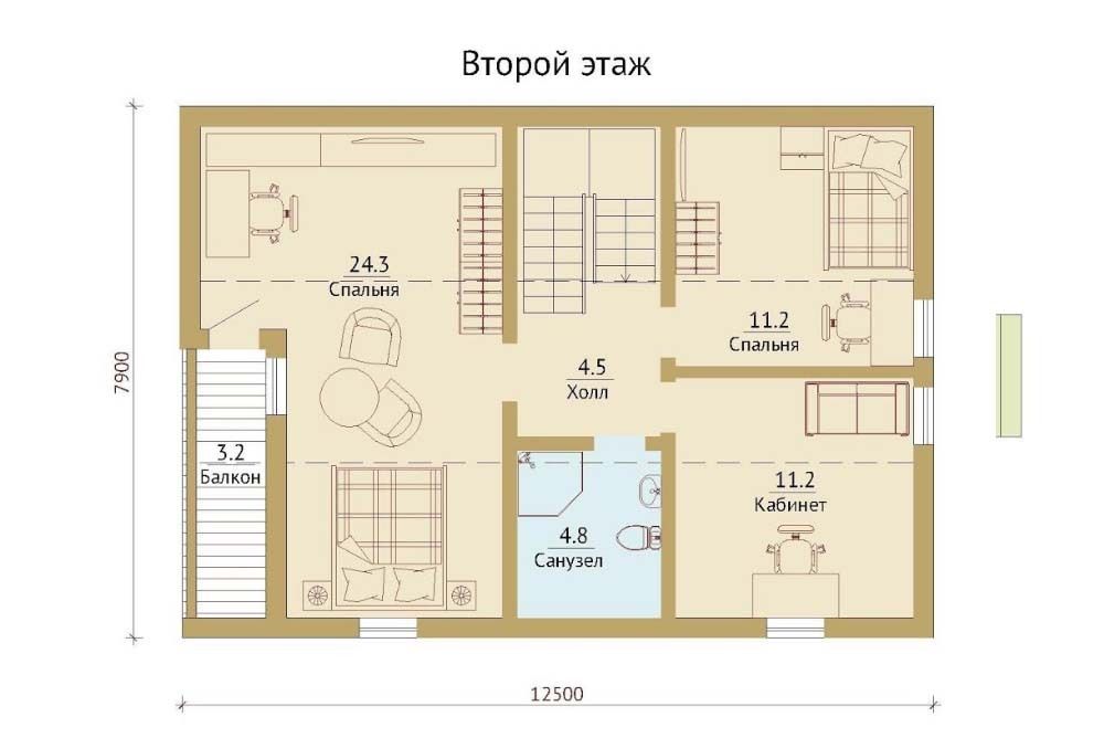 - вынос карнизных свесов крыши за пределы стен – 500 мм (в горизонтальной плоскости)