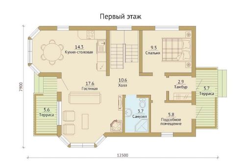 - полы на террасах – строганная сухая доска 35*140 мм (сосна, ель) с зазором