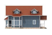 - опорные столбы на террасах – вертикальный составной брус 150*150 мм (3 скрепленных доски 50*150 мм), отделанный вертикальной имитацией бруса 16*140 мм и деревянным уголком 50*50 мм