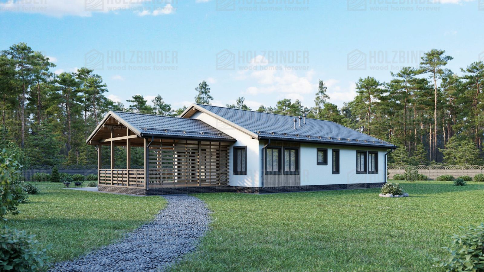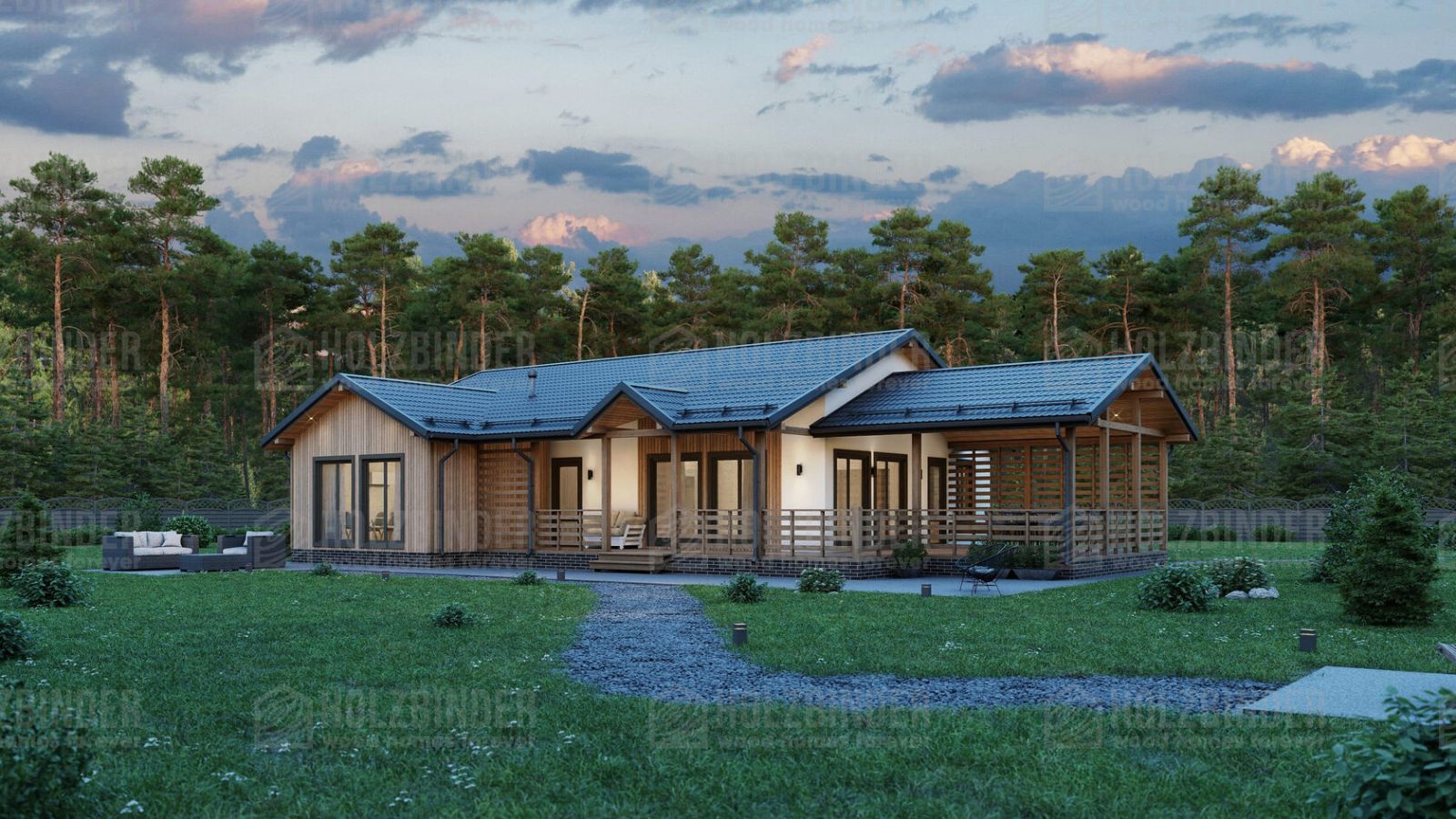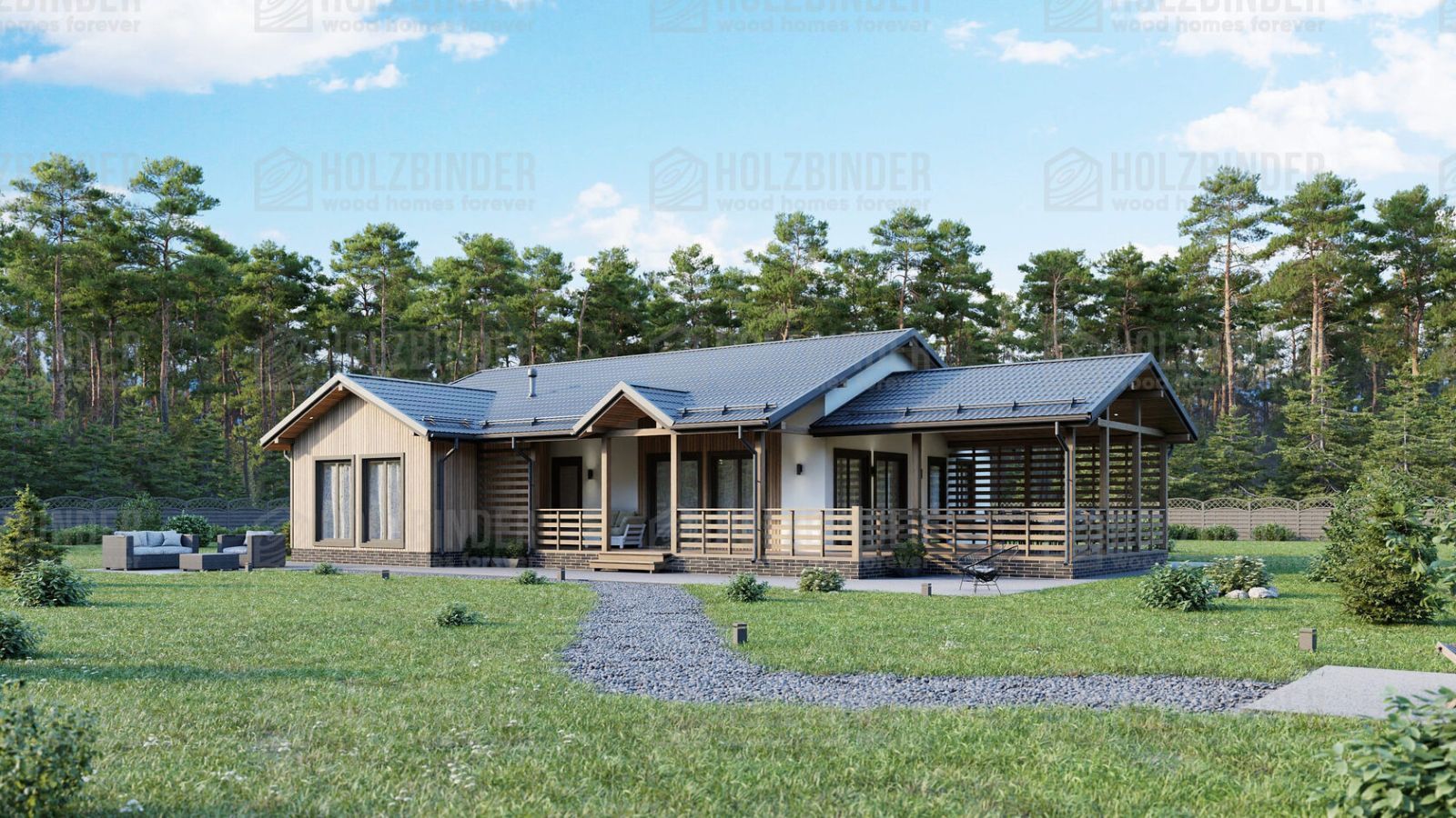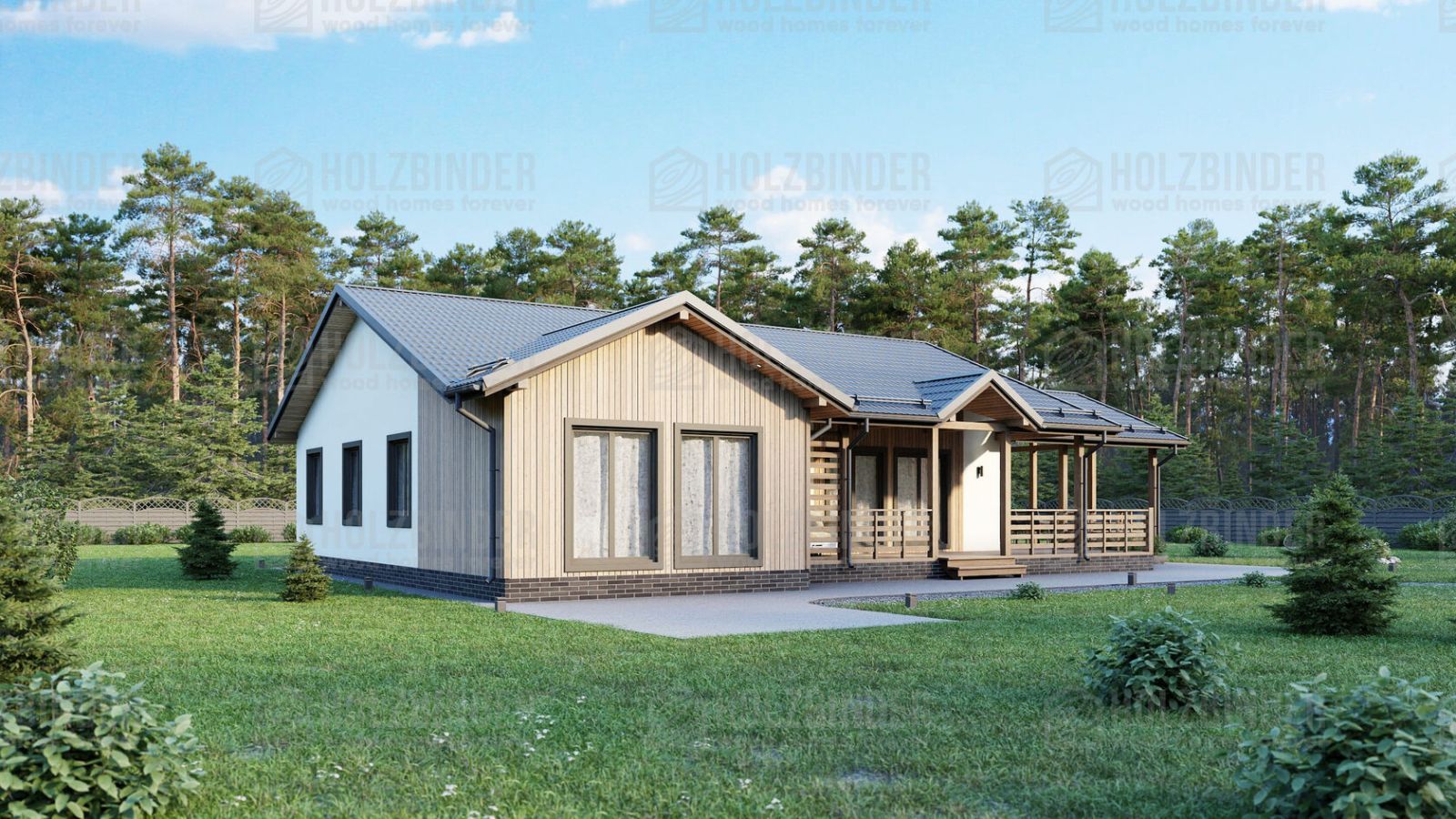 - внешняя отделка стен – металлический сайдинг "Grand Line" "ЭкоБрус"/"Квадро брус" 0,45 PE моноцвет (цвет выбирает Заказчик из однотонных) горизонтально по вертикальным рейкам 25*100 мм (вентилируемый фасад) с шагом 400 мм (300 мм между рейками)