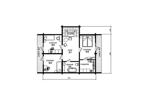 Стропила выполняются из бруска 40х150 мм и устанавливаются с шагом не более 60 см. Для перекрытия над вторым этажом используются лаги 40х150 мм и устанавливаются с шагом не более 60 см. Высота конька стропильной системы от пола второго этажа не ниже 3,6 м.