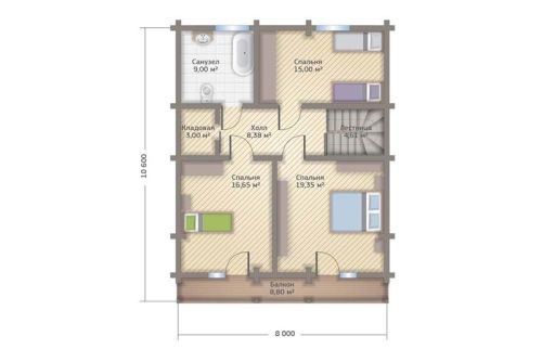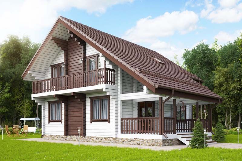 Стропила выполняются из бруска 40х150 мм и устанавливаются с шагом не более 60 см. Для перекрытия над вторым этажом используются лаги 40х150 мм и устанавливаются с шагом не более 60 см. Высота конька стропильной системы от пола второго этажа не ниже 3,6 м.