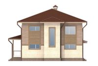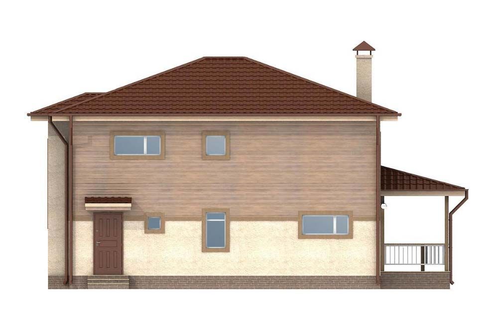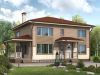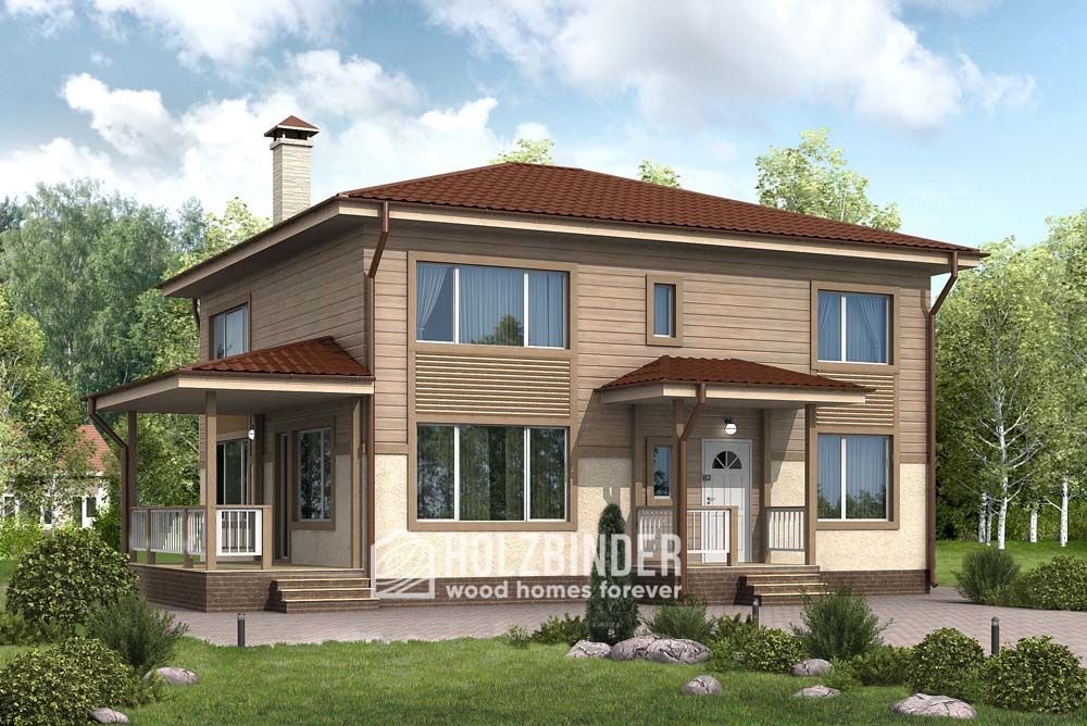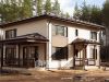- опорные столбы на террасах – вертикальный составной брус 150*150 мм (3 скрепленных доски 50*150 мм), отделанный вертикальной имитацией бруса 16*140 мм и деревянным уголком 50*50 мм