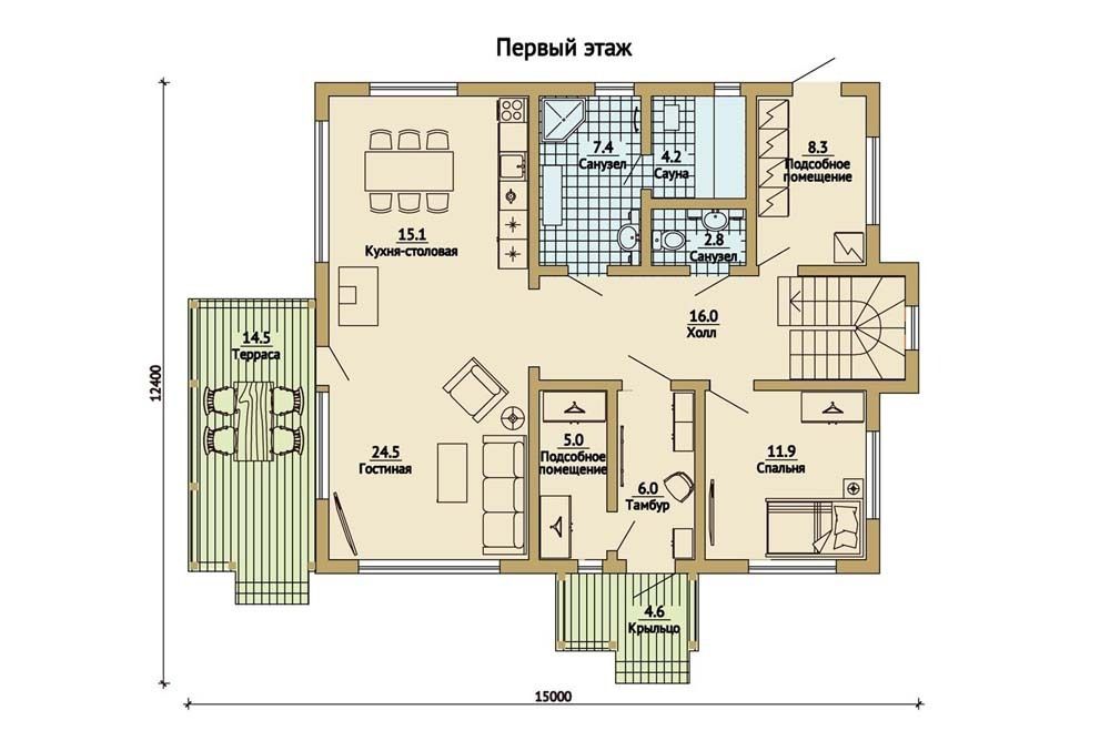 - полы на террасах – строганная сухая доска 35*140 мм (сосна, ель) с зазором
