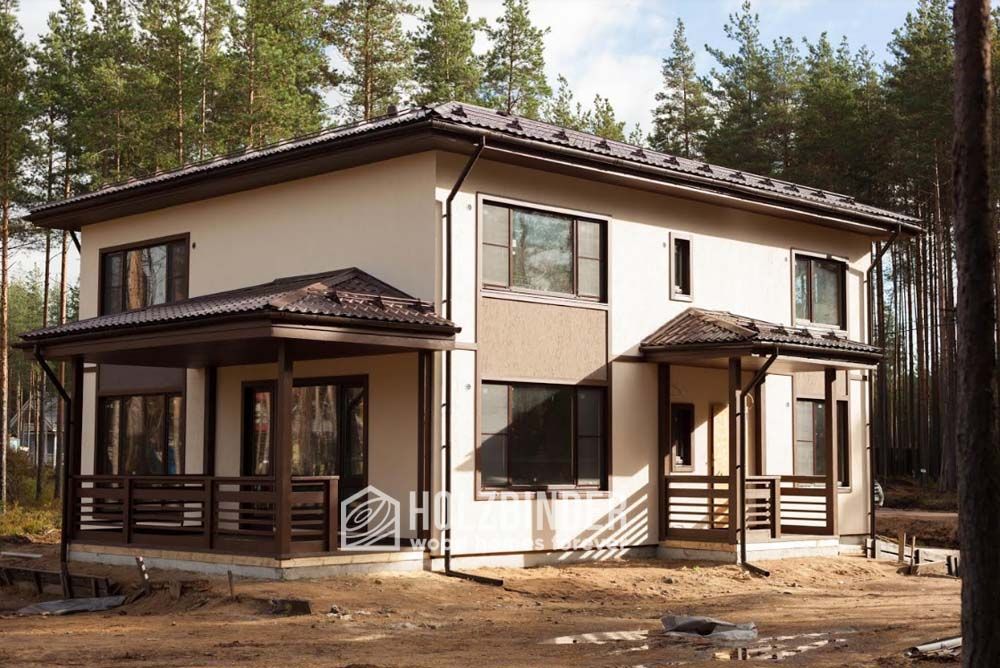 - внешняя отделка наружных углов дома – металлический внешний угол 0,45 PE моноцвет (цвет выбирает Заказчик из однотонных)
