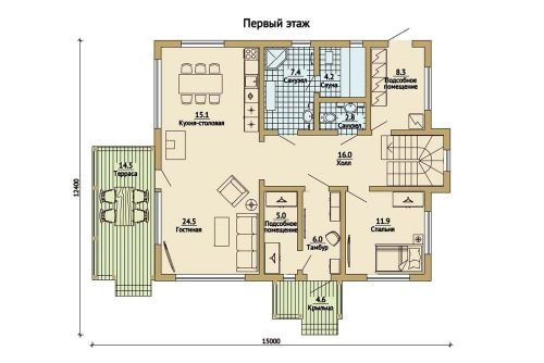 - вынос карнизных свесов крыши за пределы стен – 500 мм (в горизонтальной плоскости)