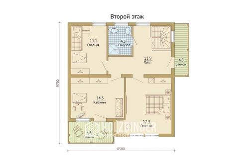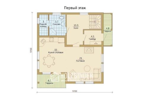 - вынос карнизных свесов крыши за пределы стен – 500 мм (в горизонтальной плоскости)