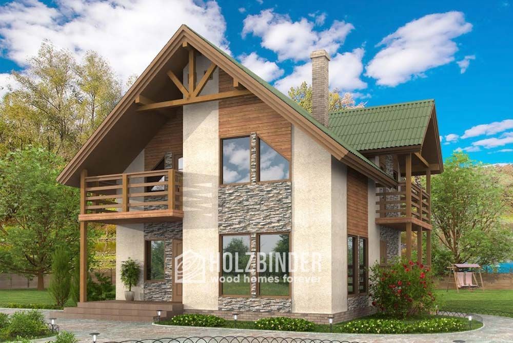 - декоративные деревянные «лучи» под коньком на каждом фронтоне фасадов – да