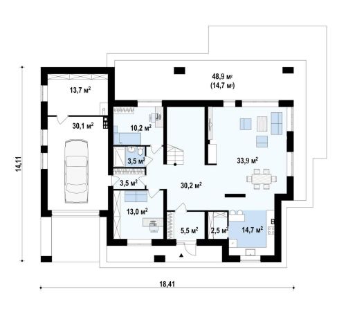 Архитектурный раздел (АР) + Конструктивный раздел (КР). Поэтажные планы, фасады, разрезы, 3D виды. План фундамента.