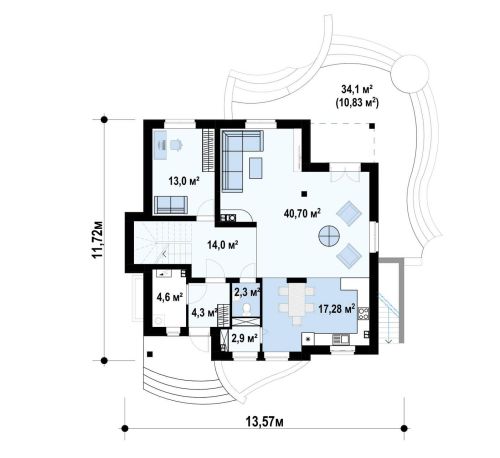 Архитектурный раздел (АР) + Конструктивный раздел (КР). Поэтажные планы, фасады, разрезы, 3D виды. План фундамента.