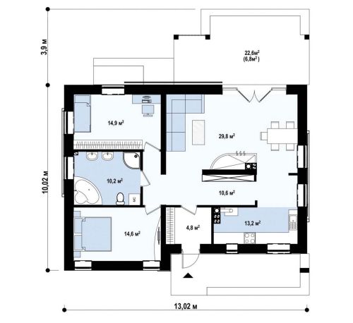 Лестница на второй этаж (если присутствует в проекте) исполняется техническая. Входная группа комплектуется ступенями. Дверные и оконные проемы выполняются с ройками. Двери и окна не входят в данную стоимость и заказываются отдельно по желанию заказчика. Наружная и внутренняя отделка не выполняется.