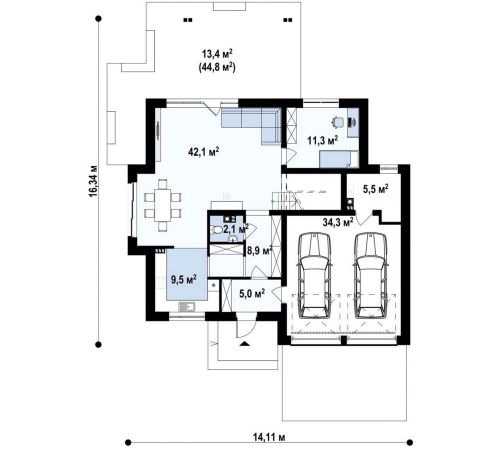 Архитектурный раздел (АР) + Конструктивный раздел (КР). Поэтажные планы, фасады, разрезы, 3D виды. План фундамента.