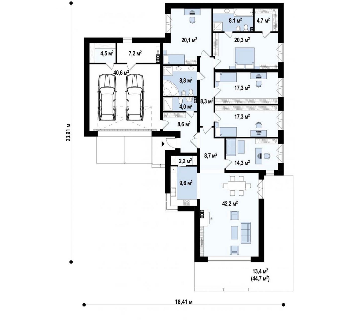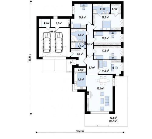 Архитектурный раздел (АР) + Конструктивный раздел (КР). Поэтажные планы, фасады, разрезы, 3D виды. План фундамента.