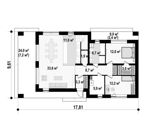 Лестница на второй этаж (если присутствует в проекте) исполняется техническая. Входная группа комплектуется ступенями. Дверные и оконные проемы выполняются с ройками. Двери и окна не входят в данную стоимость и заказываются отдельно по желанию заказчика. Наружная и внутренняя отделка не выполняется.
