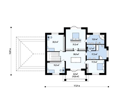Лестница на второй этаж (если присутствует в проекте) исполняется техническая. Входная группа комплектуется ступенями. Дверные и оконные проемы выполняются с ройками. Двери и окна не входят в данную стоимость и заказываются отдельно по желанию заказчика. Наружная и внутренняя отделка не выполняется.
