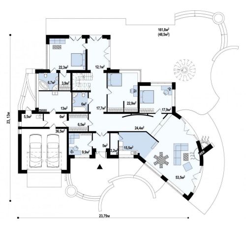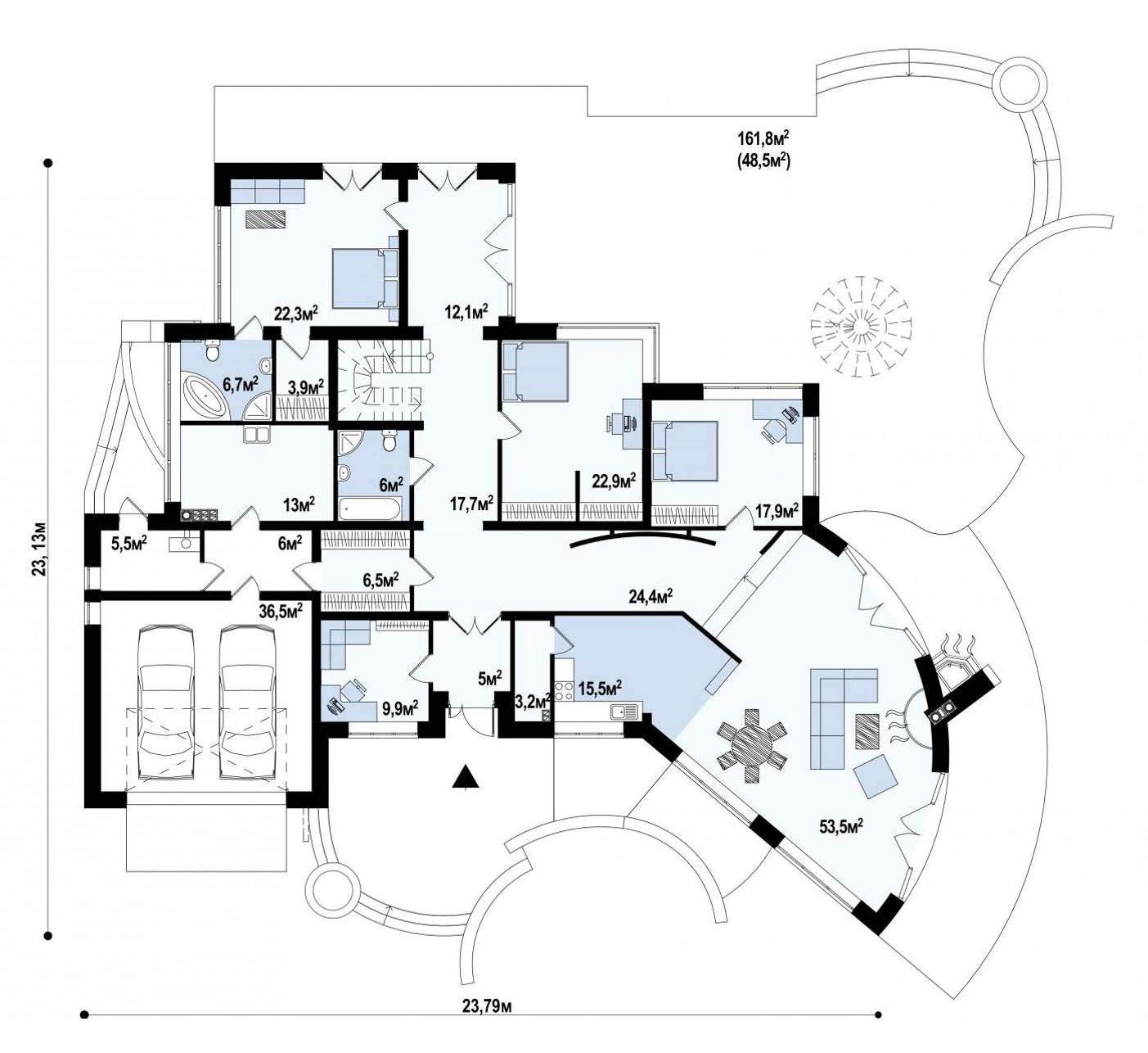 Архитектурный раздел (АР) + Конструктивный раздел (КР). Поэтажные планы, фасады, разрезы, 3D виды. План фундамента.