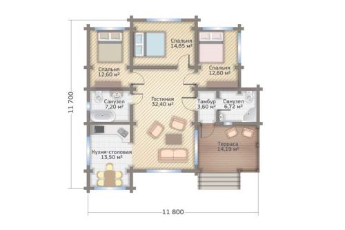 Нижний венец исполняется из бруса 150х150 мм, устанавливается по периметру, и одна перемычка посередине (при необходимости, в зависимости от размера и конфигурации дома, могут устанавливаться дополнительные перемычки). -