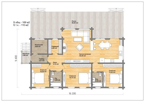Лестница на второй этаж (если присутствует в проекте) исполняется техническая. Входная группа комплектуется ступенями. Дверные и оконные проемы выполняются с ройками. Двери и окна не входят в данную стоимость и заказываются отдельно по желанию заказчика. Наружная и внутренняя отделка не выполняется.