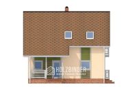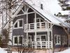 - опорные столбы на террасах – вертикальный составной брус 150*150 мм (3 скрепленных доски 50*150 мм), отделанный вертикальной имитацией бруса 16*140 мм и деревянным уголком 50*50 мм