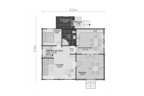 Лестница на второй этаж (если присутствует в проекте) исполняется техническая. Входная группа комплектуется ступенями. Дверные и оконные проемы выполняются с ройками. Двери и окна не входят в данную стоимость и заказываются отдельно по желанию заказчика. Наружная и внутренняя отделка не выполняется.