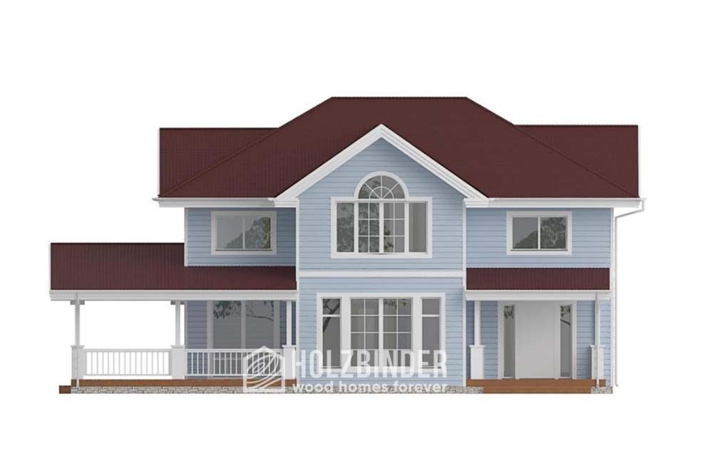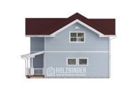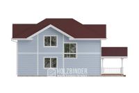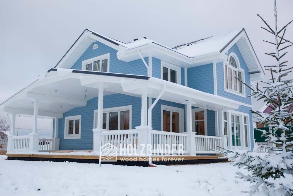- опорные столбы на террасах – вертикальный составной брус 150*150 мм (3 скрепленных доски 50*150 мм), отделанный вертикальной имитацией бруса 16*140 мм и деревянным уголком 50*50 мм