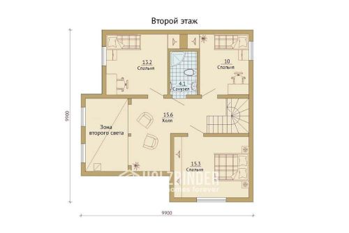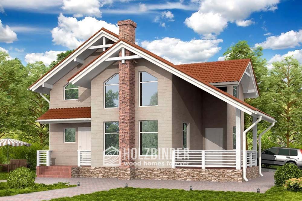 - декоративные деревянные «лучи» под коньком на каждом фронтоне фасадов – да
